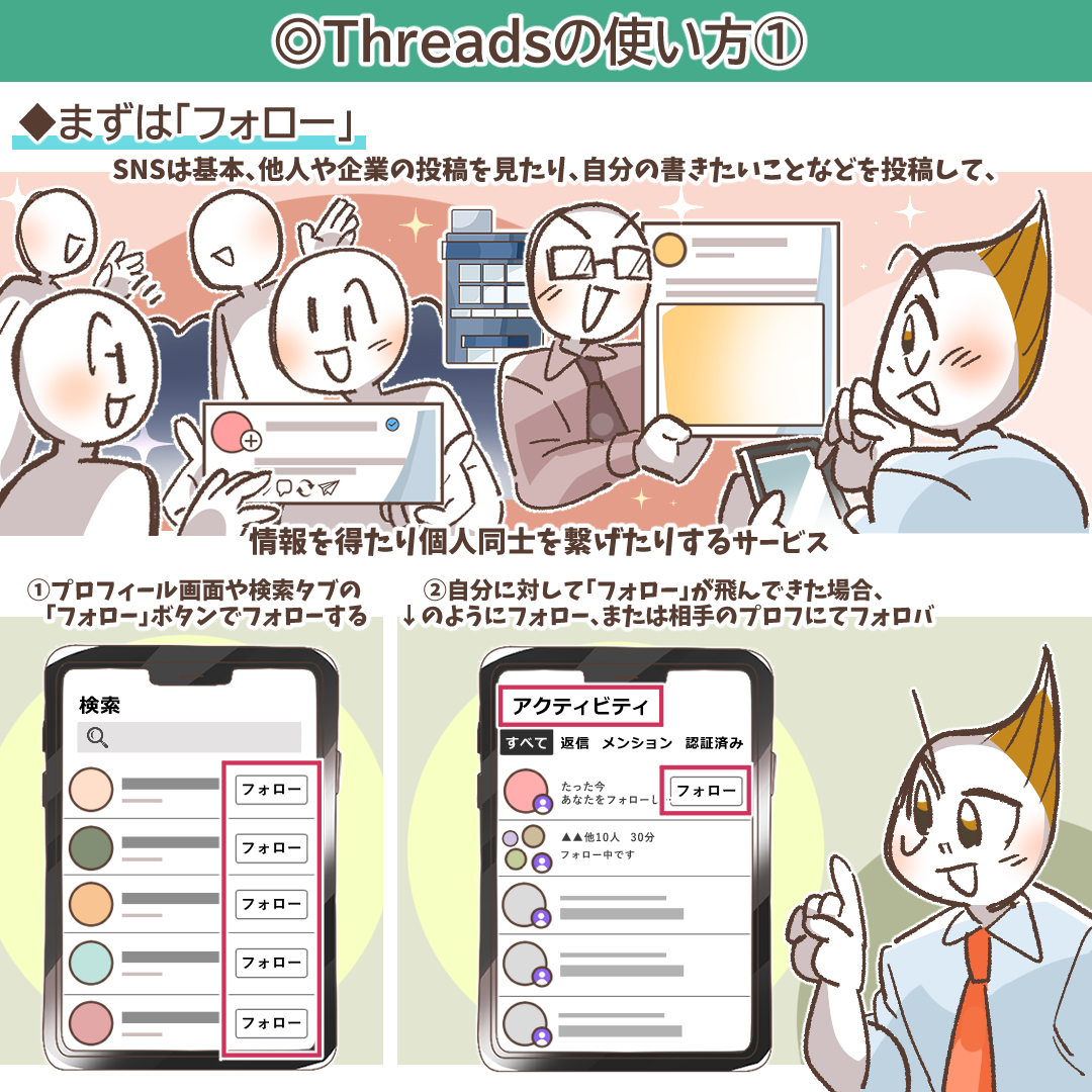 Threads(スレッズ)に限らず、SNSは基本的に他人や企業の投稿を見たり、自分の気持ちや書きたいことなどを投稿したりして、情報を得たり個人同士を繋げたりするサービスです。
