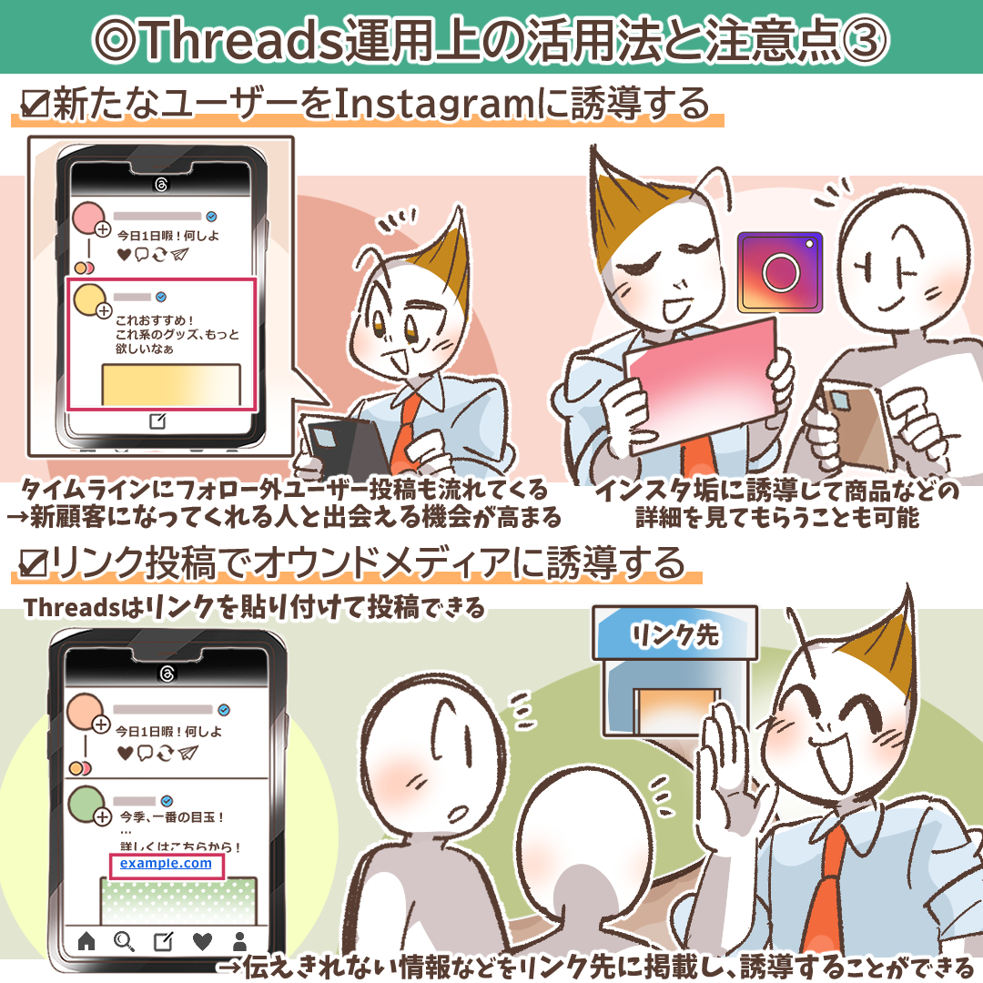 企業アカウントとしてThreads(スレッズ)を活用する場合は、すでに数種類のSNSを活用しているケースが多いでしょう。ここではThreads(スレッズ)ならではの活用方法を紹介したいと思います。